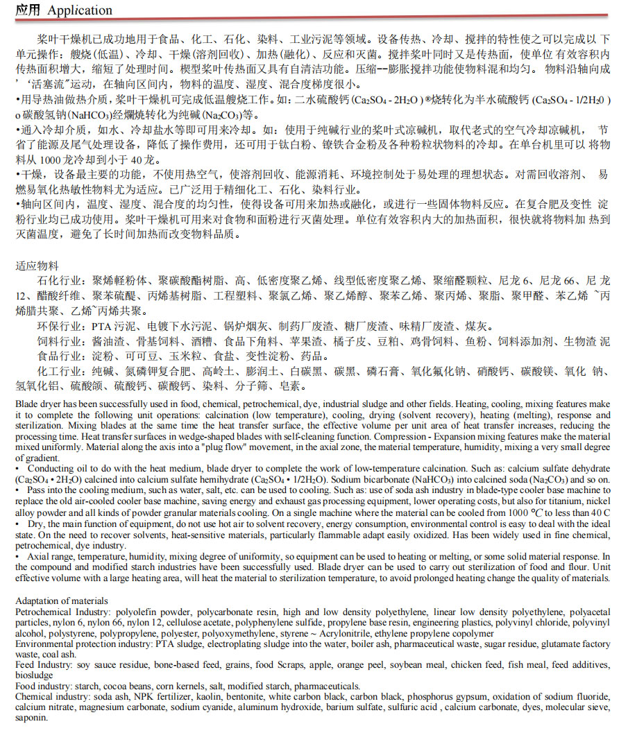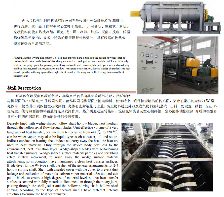 簡介:創(chuàng)弘(徐州)制藥機械有限公司在吸收國內(nèi)外先進技術的 基礎上,進行改進、優(yōu)化設計的楔型空心槳葉干燥機,可對膏狀、顆粒狀、粉狀、漿狀物料間接加熱或冷卻,可完成干燥、冷卻、加熱、滅菌、反應、低溫熾燒等單元操作。設備中特殊的楔型攪拌傳熱槳葉,具有較高的傳熱效率和傳熱面自清潔功能。